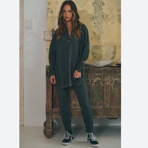 Free People Intimately Around the Clock Knit Jogger Pants Charcoal Size L