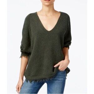 Free People Irresistible V neck Sweater Fringe Wool Blend Green Size S