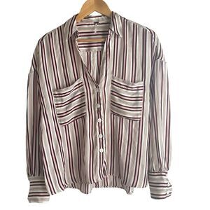 A satin button down with a striped pattern adds a dash of style and character to your seasonal attire.