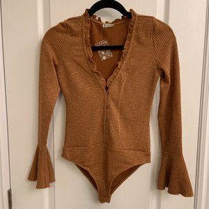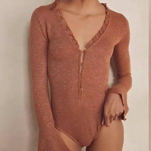 Free People Jackie Bodysuit V-neck Ruffle Romantic Vintage-inspired Size XS