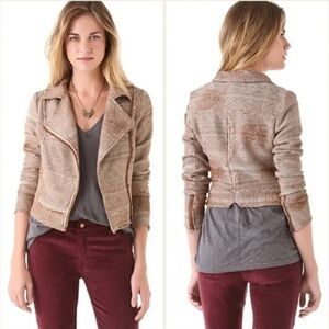 Free People Jacquard Tapestry Moto Jacket Western Equestrian Brown Boho - Size 8