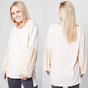 Free People Jade Top Oversized Bubble Sleeve Size XS Raw Edge Bohemian Boho Tee