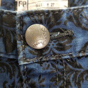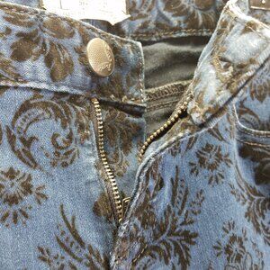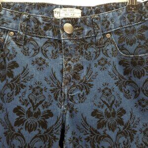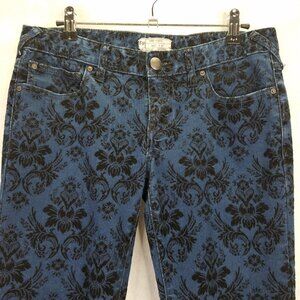 Free People Jeans Women's 27 Blue Indigo Black Velvet Brocade Floral Skinny Crop