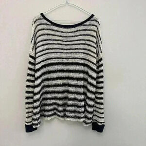 Free People Judy Punk Loose Knit Oversized Striped Boho Sweater White and Navy Women's XS