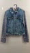 Free People Knit Hooded Denim Jacket Distressed Indigo Rinse L
