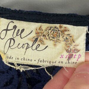Free People Lace Mini Dress Navy Blue Size XS Bohemian Romantic Eyelet Boho