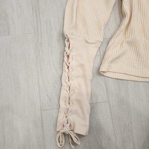 Free People One Collection Ivory Lace Up Sleeve Tasha Thermal Shirt Top
