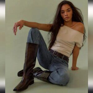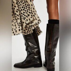 Free People Leather Like Lightning Tall Riding Boots Black/Brown Size 9