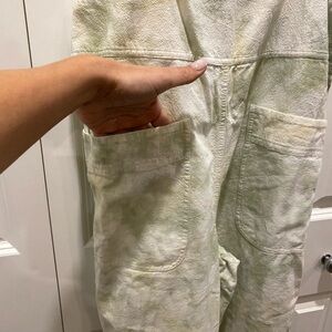 Free People Light Green & White Tie Dyed cotton Jumpsuit -front pockets - small