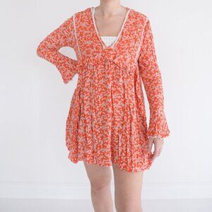 Free People Like You Best Orange Flora Long Sleeve Mini Dress M