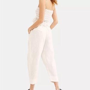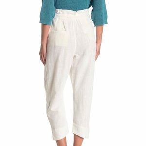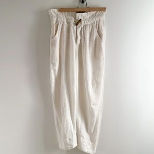 Free People Linen Cotton Blend Off White Cropped High Waist Trousers Pants XS