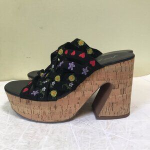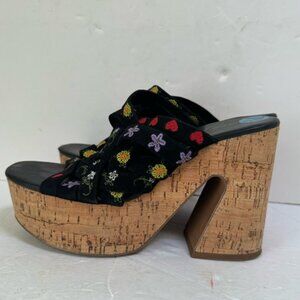 Free People Lisbon Platform Heels Floral Suede Platform Mules Sandals Clogs 7.5