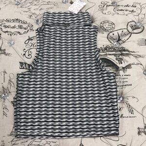 This sleeveless top features turtleneck styling and an allover geometric print.