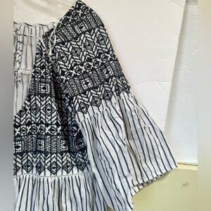 Free People Lola Embroidered Stripe Baby Doll Mini Dress Boho Cotton Tassels XL