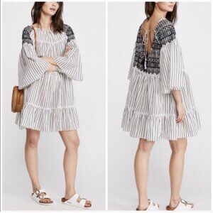 Free People Lola Embroidered Baby Doll Mini Dress Boho Cotton Tassels Stripes