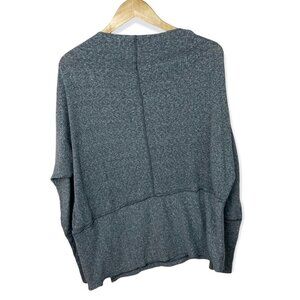 Free People Londontown Thermal Tunic Top in a Grey. Women's size Small. Slouchy lightweight oversized sweater with side slit. Poly / cotton / rayon. Machine washable. Very good pre-loved condition. No visible flaws.