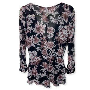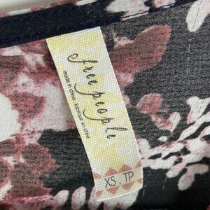Free People Romper Floral Long Sleeve Women's Size XS. Has pockets! Button back detail. V-neckline. Black with pink and cream floral print. Very good pre-loved condition.