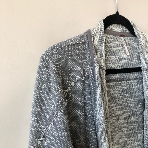 Free People Loop Knit Raw Trim Grey Open Cardigan