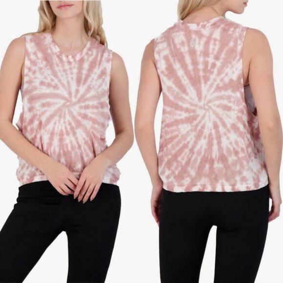 Features: Women's, Love Tank Tie Dye, 2224 Fireside Combo, burgundy and white tie dye, ribbed crew neck, ribbed hem, ribbed large arm holes, boho, bohemian, casual, athleisure, lightweight, muscle tank, cropped, yoga, exercise, workout, running, jogging, gym