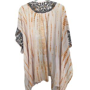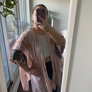 Free People Love Triangle Blush Rust Tie Dye Black Embroidered Kimono in Great Used Condition