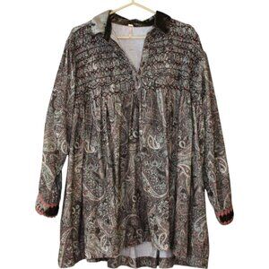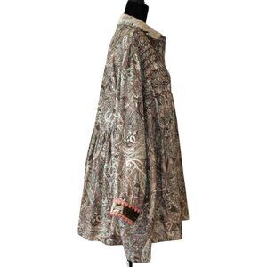 Free People Lucille Corduroy Mini Dress XS Cocoa Combo Babydoll Silhouette 229