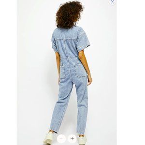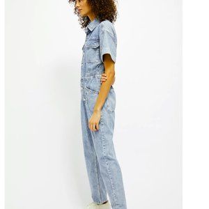 This adorable, perfect condition, jean coverall is made and sold by Free People and is one a fan favorite. Having remained on the Free People site for sale for years, this style has proven timeless, comfortable, and chill.