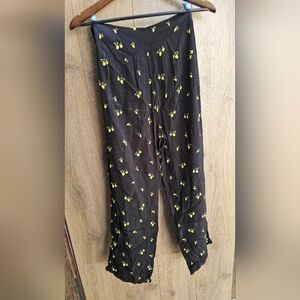 Free People Margot Black Pants with Lemon Print