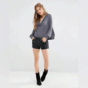 Free People Metallic Gray Cowl Neck Palmer Long Sleeve Size Medium