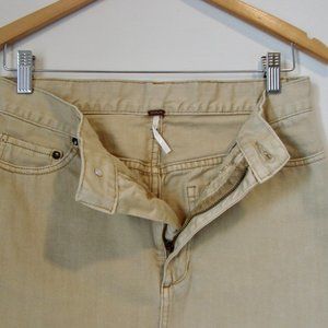 Free People Mini Skirt Beat of the Music Tan Khaki Denim Raw Hem Size 2 Small