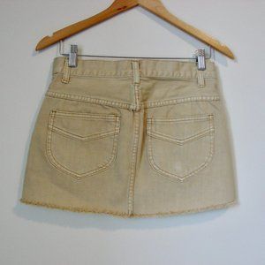 Free People Beat of the Music Tan Khaki Denim Mini Skirt Raw Hem ~ Size 2 Small ~ 100% Cotton