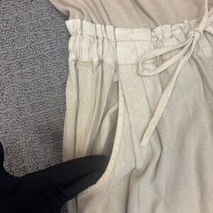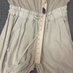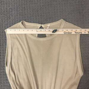 Free People Mixed Media One Piece Beige Sleeveless Jersey Knit Top Ruched Leg