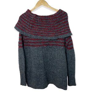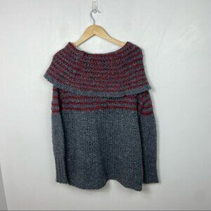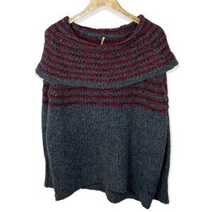 Free People Mohair Wool Linen Knit Engineer Sweater Grey Cowl Neck Fair Isle XS