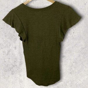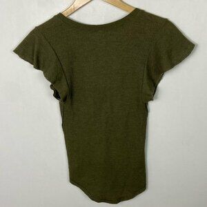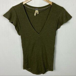 Free People Moss Green Flutter Sleeve Tee Size XS V-Neck Knit Moss Short Boho