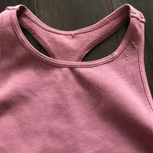 FP Movement high neck racerback tank top. Some pilling at the bottom and some snagging near the neckline.
