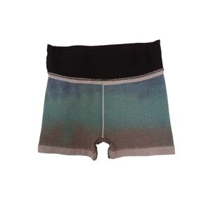 Light green with gray and a wide black waistband, these shorts have stretch available and body contouring stitching.