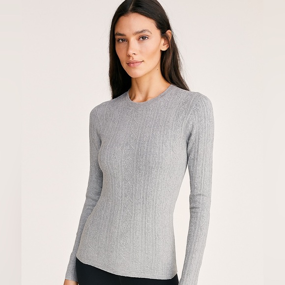 Fitted active top with cable design from Free People Movement. Slit at the sides, thumb holes.