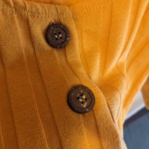 Free People Mustard Yellow 3/4 Sleeve Scoop Neck Crdigan with Brown Wood Buttons