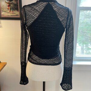 Free People My Party Long Sleeve Lace Crop Top In Black