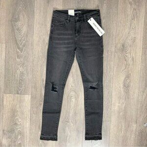 Free People NEON BLONDE Skinny Jeans Distressed Black Denim High rise waist 24