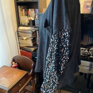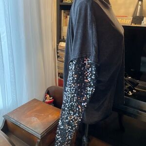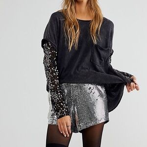 Free People NEW Celine Sequined Sleeve Tee Size Large NWT