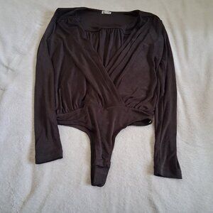 Free People NWOT Women's Size Medium Dark Brown Turnt Crossover Bodysuit