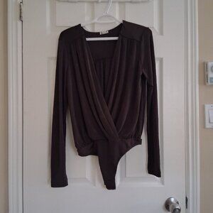 Free People NWOT Women's Size Medium Dark Brown Turnt Crossover Bodysuit
