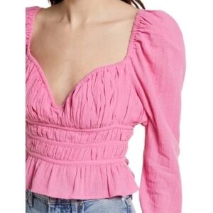 Free People NWT Chloe Top Pull Sleeve Cropped Top - Aurora Pink - Size Medium