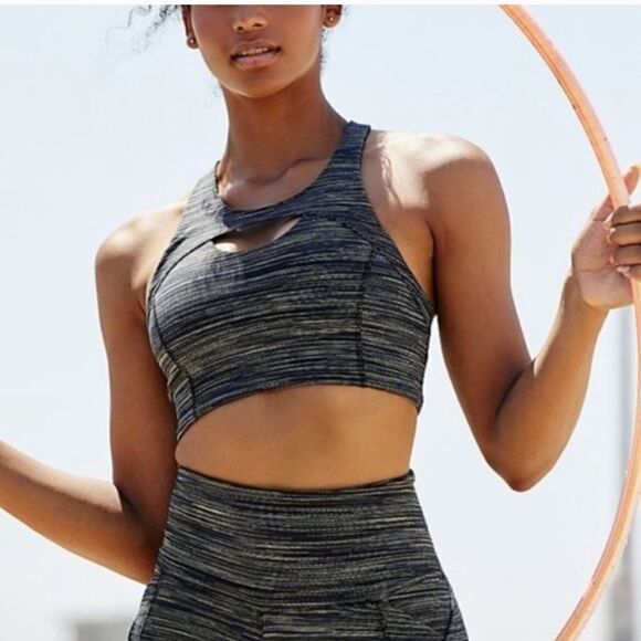 Free People NWT Strut Green Striped Sports Bra Cut Out Keyhole Gym