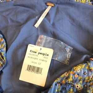 Free People NWT Sweetest Thing Midnight Cowboy blue floral ruffle dress Size 12