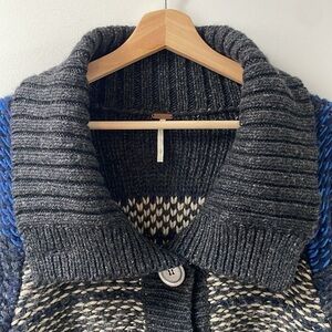 Free People Napoli Cardigan Sweater Wool Button Front Short Sleeve chunky knit S