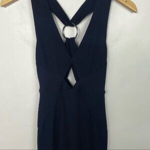 Free People All The Right Angles Dress in a Dark Navy Blue and Women's Size XS. From Revolve. Gorgeous ribbing and bandage construction creates intriguing texture on a flattering midi-length dress styled with a diminutive front keyhole and strappy racerback centred with metallic ring. 73% poly, 23% rayon and 4% spandex. Lined in rayon. Ribbed knit fabric. Cutout detail on front. V-neck. Machine washable.
