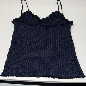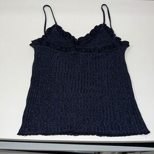Free People Navy Blue Ruffled Trim V-neckline Cami size XS
