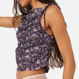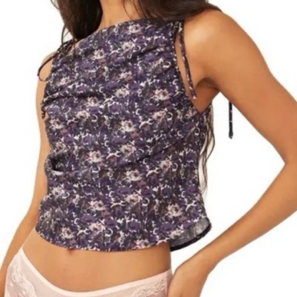 Slender straps tie at the shoulders of a beautiful camisole with a high neck and figure-skimming