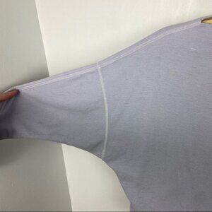 Free People We The Free Nikala Tee in Lavender Purple and Women's Size XS. 61% Polyester, 39% Cotton. Lightweight thermal top featured in a slouchy silhouette with contrast stitching. Boat neckline. Zip detailing on the shoulders. Dolman style sleeves. Very good pre-loved condition. No visible flaws.